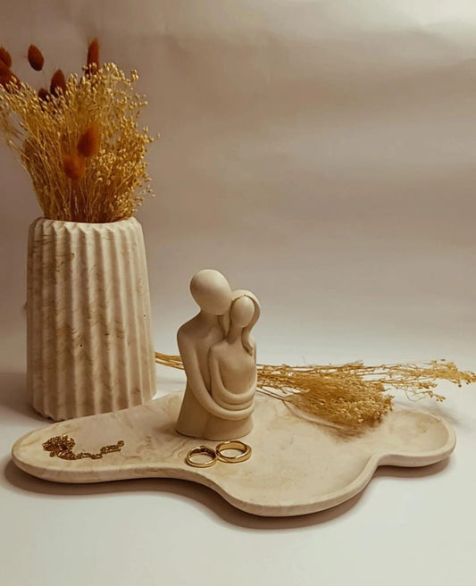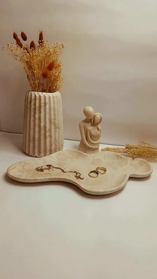 Conjunto de caixinha para joias, jarra e base redonda em folha de ouro
